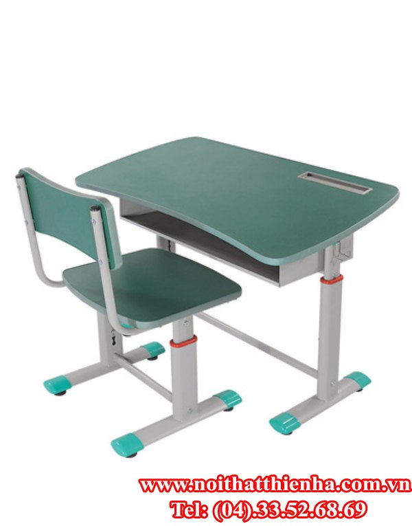 Bộ bàn ghế học sinh, chân sắt mặt gỗ màu vàng hoặc xanh. Ghế và bàn có thể thay đổi được độ cao